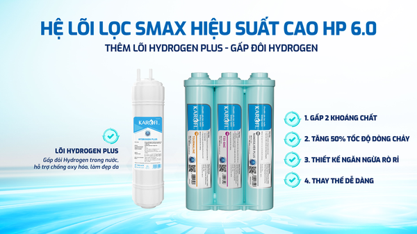 Hệ thống lọc Hệ thống lọc 11 lõi Smax độc quyền: cụm lõi lọc thô Smax Pro V, màng RO và hệ thống lõi chức năng HP 6.0