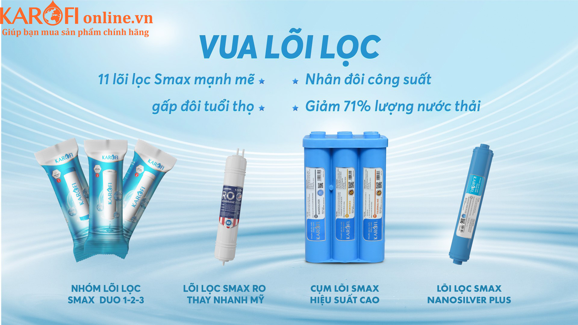 Sản phẩm hoạt động mạnh mẽ với 11 lõi SMAX mang đến hiệu suất cao vượt trội: Nhân đôi công suất, gấp đôi tuổi thọ và tiết kiệm 71% lượng nước thải.