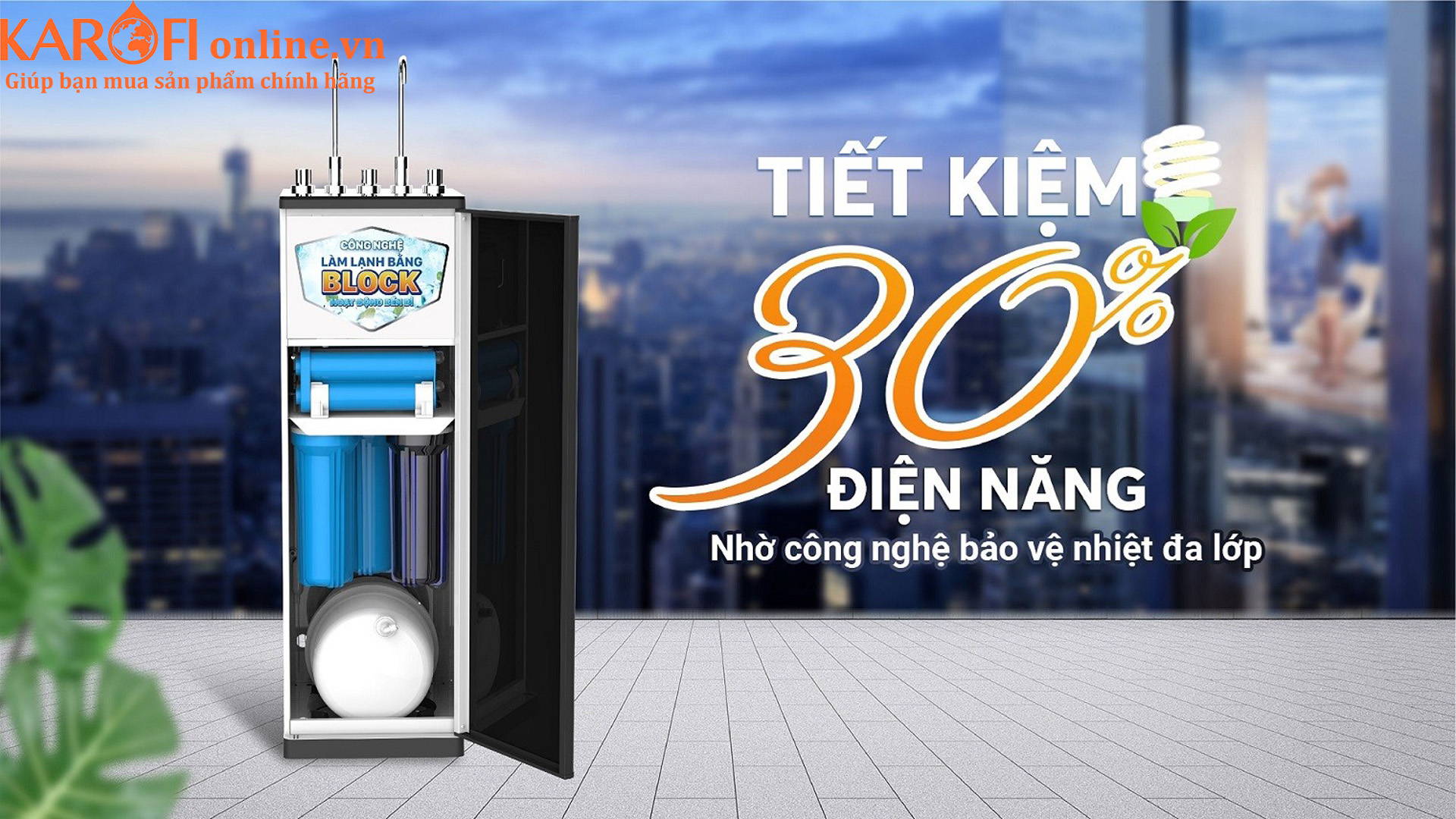 Sản phẩm giúp tiết kiệm 30% điện năng so với các máy nóng lạnh thông thường nhờ công nghệ bảo vệ nhiệt đa lớp